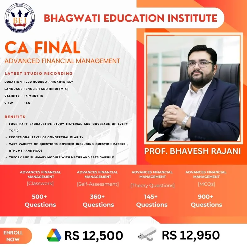 Prepare with confidence and achieve your CA dreams with the Advanced Financial Management Video Lecture by Prof. Bhavesh Rajani. Don’t miss out on this essential resource to boost your exam performance and ensure success!